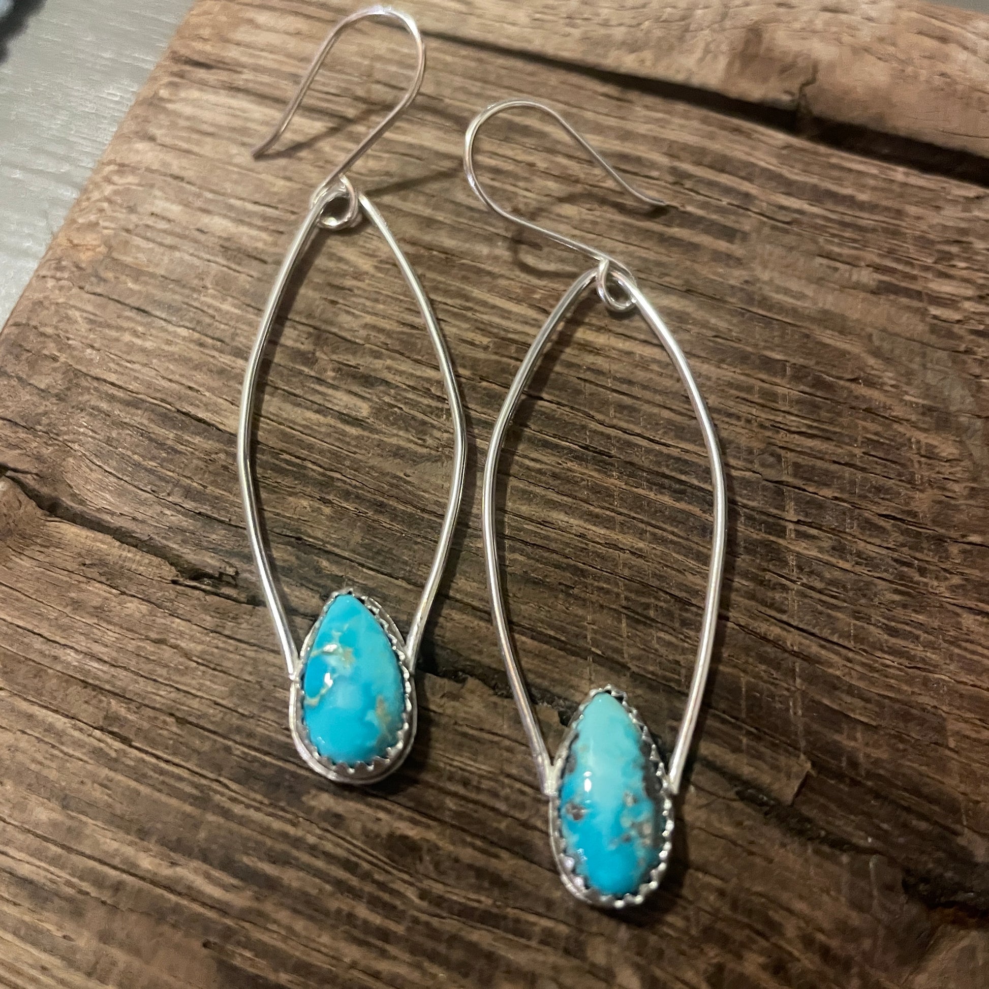 Playful drop oval earrings featuring Blue Bird Turquoise or Sonoran Gold Turquoise these dangles add a splash of bold, confident color be it day, night or just an easy Sunday Morning. Slip 'em on and take on the day!